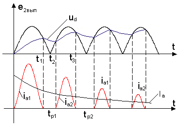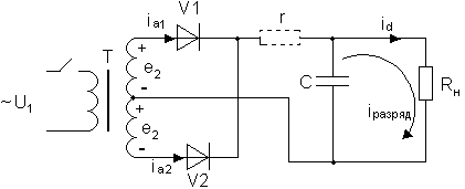 Около 20% всей мощности в нагрузку передается переменной составляющей. Для уменьшения пульсации (устранения переменной составляющей) применяются фильтры.