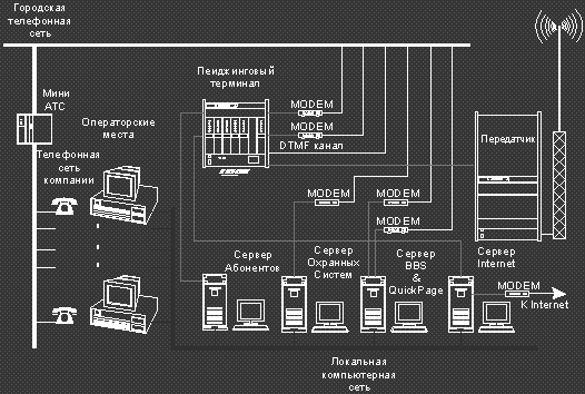 Типовая схема построения и состав оборудования пейджинговой сети приведена на рис.7.