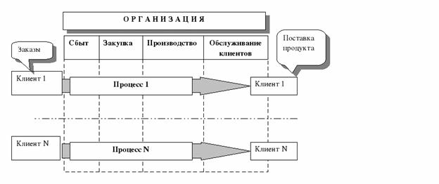 Сквозные (межфункциональные) бизнес – процессы. Сквозной или межфункциональный бизнес – процесс - это бизнес – процесс, полностью или частично включающий деятельность, выполняемую структурными подразделениями предприятия, имеющими различную административную подчинённость.