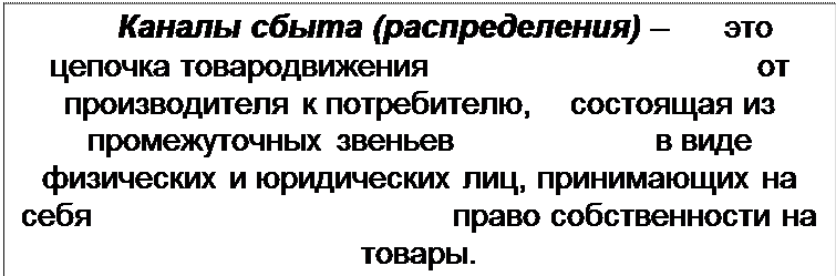 Выбирая канал сбыта, продавец решает, какие группы потребителей, через какие промежуточные ступени он будет снабжать.