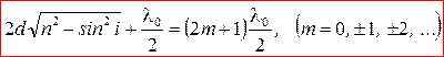 При освещении пленки белым светом она окрашивается в какой-либо определенный цвет, длина волны которого удовлетворяет максимуму интерференции. Следовательно, по цвету пленки можно оценивать её толщину. Условия (8), (9) зависят при постоянных значениях n, l0 от угла падения i и толщины пленки d, в зависимости от этого различают полосы равного наклона и полосы равной толщины. Полосами равного наклона называют интерференционные полосы, возникающие в результате наложения лучей, падающих на плоскопараллельную пластинку под одинаковыми углами. Полосами равной толщины называют интерференционные полосы, возникающие в результате наложения лучей, падающих на пластинку переменной толщины от мест одинаковой толщины.