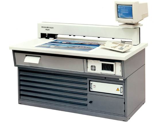 Примеры ручных приборов для измерения цвета: Система, показанная на Рис. 14, осуществляет анализ запечатываемого листа в одном направлении при размере считывающей апертуры, равном 2х3 мм². Для сканирования печатного листа используется оптическое многоканальное развертывающее устройство. Спектральные измерения в конкретной точке основаны на работе дифракционной решетки, как это производится в устройстве, показанном на Рис. 13. Такая система наряду с измерениями полей контрольной шкалы и внетриадных красок может также выполнять измерения на самом изображении. Последние всегда желательны для печатника, потому что в конце концов качество изображения – это решающий фактор оценки тиража заказчиком. Измерения по всей площади листа облегчают оценку при наличии изображений разного типа, оцениваемых по различным критериям и опорным значениям. Становятся возможными оценки контрольных шкал, многокрасочных наложений, плашечных слоев внетриадных красок и т.п. С помощью специальных программных алгоритмов на печатном листе автоматически распознаются элементы, подходящие для измерений. Это существенно облегчает приладку, особенно при печати упаковки. Более того, контроль, выполняемый путем сканирования площади всего печатного листа, например, контроль наличия искажений и дефектов репродукции, осуществляется посредством использования монитора или других средств.