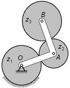 Водило OAB планетарного механизма вращается с угловой скоростью