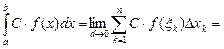 Пусть на интервале ] a, b [ задана непрерывная функция f(x). Разобьем ] a, b [ точками