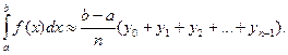 Окончательно получим: Для функции Таким образом, погрешность при n = 10 не превышает 0,00015. Принцип получения формул приближенного вычисления определённых интегралов основан на их геометрическом смысле и состоит в замене элементарных криволинейных трапеций на более простые плоские фигуры. Замена этих трапеций на прямоугольники порождает формулы