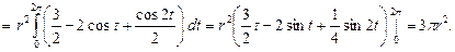 Пример 7. Найти площадь плоской фигуры, ограниченной одной аркой циклоиды Поскольку