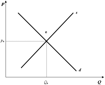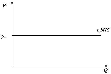Рис. 1. Конкурентный рынок ресурсов Так как каждый отдельный наниматель на конкурентном рынке ресурсов воспринимает цены на них как нечто данное, он может закупить по равновесной цене столько ресурсов, сколько ему необходимо. Тогда кривая предложения любого ресурса, какой она видится каждому отдельному нанимателю, представляет собой горизонтальную линию, пересекающуюся с вертикальной осью в точке, соответствующей равновесной цене.