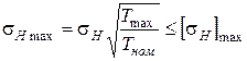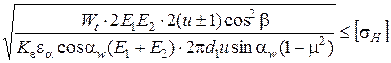 Подставляя все найденные данные в исходное уравнение Герца получим s н = Заменив в соответствии с формулами тригонометрии в знаменателе 1.- 2.- 3.- получим в итоге формулу для проверочного расчета зубчатых колес на контактную выносливость: s н = Как видно из формулы, контактное напряжение увеличивается при увеличении действия крутящего момента Т 1 и уменьшается при увеличении ширины b w, диаметра d 1 и угла наклона β зубчатых колес. Коэффициент ZH в среднем равен Коэффициент ZM = 275 МПа½ для стальных зубчатых колес при модуле упругости Е1 = Е2 =2,15·105 МПа и μ1=μ2=0,3; если модули упругости Е1 = Е2 = 2,1·105 МПа, то ZM = 191,6 МПа½. Коэффициент Zε для косозубых и шевронных зубчатых передач при εα > 0,9 При εα = 1,2…1,8 в среднем можно принять Zε = 0,9. Формула для поверочного расчета при действии максимальной нагрузки с целью предотвращения остаточных деформаций или хрупкого разрушения поверхностного слоя