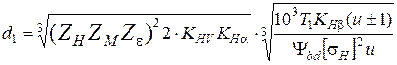 где Ка = 450 для прямозубых, или Ка = 410 для косозубых передач.