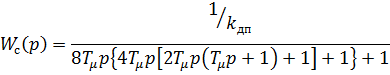 Схемасодержит аналоговую часть системы в силовой части с преобразователем и двигателем и в системе управления с контурами тока и скорости с аналоговыми регуляторами АА и AR и датчиками тока и скорости UA, BR. Регулятор положения выполнен как цифроа налоговый с аналоговой частью AQ. В цифровую часть контура положения входят арифметическое устройство (АУ) AW, цифроаналоговый преобразователь (ЦАП) VZV. Арифметическое устройство получает на вход цифровой сигнал задания положения Nвз с цифрового устройства ввода задания SZ и цифровой сигнал Nвп, соответствующий реальному положению Это число с помощью цифроа налогового преобразователя UZV преобразуется в аналоговый сигнал задания положения U3n, поступающий на аналоговую часть РП. Остальная чарть системы работает как аналоговая (ом. § 2.2). Для анализа работы системы составляется структурная схема цифроаналотовой системы (рис. 2.8). Поскольку контуры тока и скорости настроены на технический оптимум, то в структурной схеме электропривод с этими контурами изображен одним звеном с передаточной функцией (2.1). Преобразователь кода UZ с датчиком положения BQ и ЦАП UZV рассматриваются как безынерционные звенья с коэффициентами передачи k д п и kЦАП. Аналоговый РП настраивается с нелинейной характеристикой, как в § 2.2. Настраивая цифровой контур положения на технический оптимум, получим передаточную функцию системы