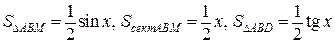 В силу последовательной вложимости друг в друга треугольника ABM, сектора ABM и треугольника ABD соответствующие соотношения имеют место между площадями этих фигур: