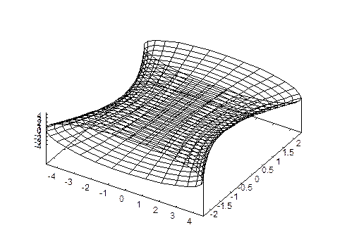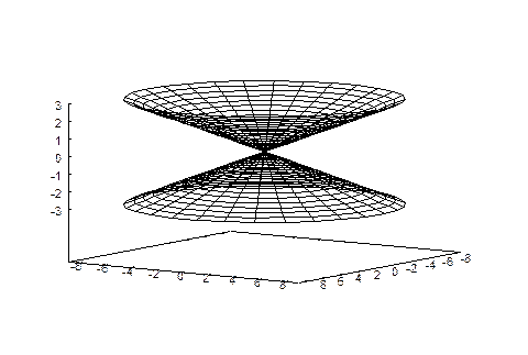 Будем вращать эту кривую вокруг оси OX. Мы получим поверхность, задаваемую уравнением 2hyp.wxm
