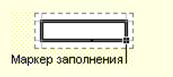 Автозаполнение используется в MS Excel для копирования в смежные с выделенной ячейкой клетки в каком-либо одном направлении. Формулы при таком копировании корректируются обычным образом, форматы - копируются. Автозаполнение удобно использовать, чтобы создавать последовательности увеличивающихся или постоянных значений в ячейках рабочего листа. Если выделить две смежные ячейки с числами и расширить выделение с помощью маркера заполнения, то значение в каждой последующей клетке будет отличаться от предыдущей на разницу между первыми двумя (арифметическая прогрессия). Маркер заполнения – небольшой черный квадрат (Рис. 20.) в углу выделенного диапазона. Попав на маркер заполнения, указатель мыши принимает вид черного креста. Чтобы скопировать содержимое выделенного диапазона, нужно нажать левую кнопку мыши на маркере заполнения и перемещать мышь в нужном направлении.