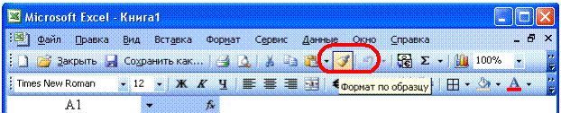 Примечание. Пользовательский список может содержать текст или текст в сочетании с числами. Чтобы создать пользовательский список, состоящий только из чисел, например, инвентаризационных номеров, выделите сначала достаточное количество свободных ячеек, предназначенных для его размещения. Выберите команду " Ячейки " в меню " Формат ", а затем – вкладку " Число ". Свободным ячейкам назначьте текстовый формат и введите в них список чисел. В MS Excel есть удобная возможность копировать только форматы выделенного интервала. Для этого после выделения нужно щелкнуть кнопку "Формат по образцу" (Рис. 22.) панели инструментов Стандартная и указать выходной диапазон.