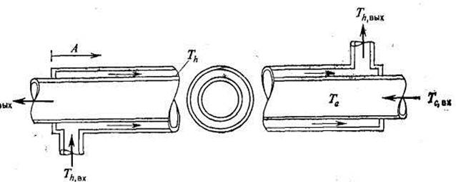 Рис. 1. Простой противоточный теплообменник типа «труба в трубе».