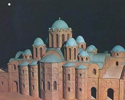 Каменное строительство начинается в конце X в 10 век. Десятинная церковь (церковь Успения Пресвятой Богородицы) в Киеве — первая каменная церковь Киевской Руси. Сооружена между 986г. и 996г. в Киеве.