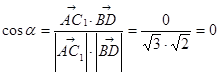 Розв’язання. Нехай - заданий куб. Знайдемо кут між його діагоналлю та діагоналлю бічної грані . Для цього введемо в розгляд прямокутну декартову систему координат, вибравши точку початком координат, а промені вибравши за додатні напрямки осей відповідно та . Нехай ребро куба рівне 1. Тоді дістаємо , , , , звідки . Якщо шуканий кут позначити через , то .