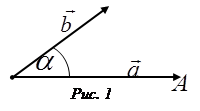 Кутом між векторамита назвемо кут між променями та . Причому з двох кутів, які при цьому утворюються, вибиратимемо той, який не перевищує , тобто (рис. 1).