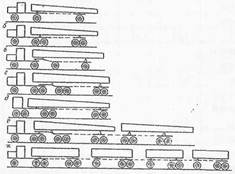 Автопоїзда і спеціальне устаткування для перевезення лісоматеріалів Лісовозні автопоїзда складаються з автомобіля-тягача, що має поворотного коника, і причепа-розпуску, на поворотного коника якого спирається задній кінець пакету лісу. Схеми лісовозних автопоїздів показані на рис. 7.7. Основними схемами є а, би, д. За хороших дорожніх умов використовуються автопоїзда у складі сідельного тягача, напівпричепа і розпуску (рис. 7.7, в, г, е). Такі автопоїзда мають максимальну вантажопідйомність. Їх недоліком є схильність до «складання», що погіршує їх маневреність.