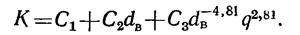 Приймаємо, що довжина трубопроводу рівна 1 км, і ділимо обидві частини рівняння на величину річної пропускної здатності C4qρ. Вважаючи, що K/ C4qρ = k - питома вартість транспортування, будемо мати