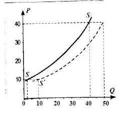 Сдвиг кривой предложения. Рис. 3-4. В результате того что затраты фирмы на производство товаров снизились, кривая предложения сместилась вправо. Если сначала она занимала положение SS, то теперь — 55.