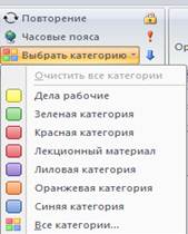 Встречи можно классифицировать по категориям. OutLook предлагает начальный набор категорий, который можно использовать как отправную точку.