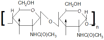 ХИТИН – ВМС, построенный из остатков N-ацетил-D-глюкозамина; неразветвленная структура. Не растворяется в воде щелочах, разб. кислотах и органических растворителях: