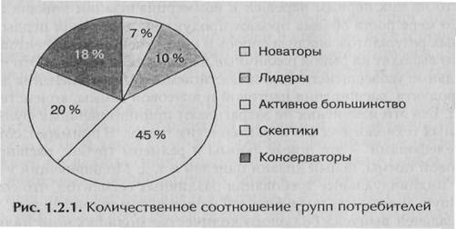 Объяснить такие затраты можно уникальным конкурентным преимуществом, которое получают компании в результате успеха инноваций, — это преимущество новизны. Практически каждый второй рекламируемый товар на рынке позиционируется как новый. Почему это выгодно производителям и привлекательно для потребителя? Во-первых, при выходе на рынок с новой или усовершенствованной продукцией компания получает временный статус монополиста, что позволяет ей аккумулировать сверхприбыль и диктовать свои условия. Вовремя заполненное рыночное окно становится нишей, где спрос и предложение полностью сбалансированы, а у потребителя формируется приверженность к новой марке. Грамотная маркетинговая политика и защищенное ноу-хау обеспечивают долгосрочную прибыльность нововведения. Во-вторых, успешное осуществление инновационных проектов придает компании имидж гибкой и инновативной, что является важной составляющей конкурентоспособности современных фирм. Таким образом, новая продукция стимулирует спрос на продукцию фирмы в целом, часто продлевая ЖЦ товаров на стадии зрелости или даже спада. Чтобы понять, почему продукция, позиционированная как новая и не являющаяся первичной уникальной инновацией, позволяет получать значительные прибыли, обратимся к выделению типовых групп потребителей по их восприятию новых товаров и услуг. В маркетинге выделяют пять таких групп: новаторы, лидеры, активное большинство, скептики и консерваторы. Охарактеризуем поведенческие особенности каждой группы. Новаторы — люди, позиционирующие себя в обществе как прогрессивные, склонные к риску и инновациям. Как потребители они стараются окружать себя вещами, подчеркивающими заявленный статус, при этом наличие функциональной необходимости в товаре часто отсутствует. При появлении новой продукции, имеющей хорошую маркетинговую поддержку (активно рекламируемую и целенаправленно позиционированную как новинка), новаторы, как правило, приобретают ее в первые несколько недель с момента выхода на рынок. Необходимо заметить, что такое покупательское поведение более характерно при приобретении товаров и услуг широкого потребления — товаров повседневного спроса и предварительного выбора. По характеру потребления новаторы обычно находятся на третьем и четвертом уровнях пирамиды Маслоу. Лидеры отличаются от новаторов тем, что они имеют потребность в данном типе товара с точки зрения его функциональности и охотно приобретают новинку, отвечающую их запросам. Лидеры не являются приверженцами каких-либо марок и с удовольствием тестируют новую продукцию, полагаясь на собственное мнение. Лидеры вместе с новаторами являются типичными потребителями товаров первой стадии ЖЦТ, и их интерес ослабевает, когда товар переходит в стадию роста. Активное большинство — это те покупатели, которые обеспечивают рост объема продаж на второй стадии ЖЦТ. Они приобретают новинку при наличии трех принципиально важных для них факторов: - наличие функциональной потребности в товаре; - приемлемость цены; - положительные отклики экспертов и потребителей (новаторов и лидеров) о новинке. Часть активного большинства становится приверженцами нового товара, а затем и новой марки, если компании удалось выпустить на рынок действительно конкурентоспособную продукцию и разработать дл