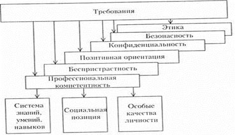 Требования к деятельности психолога-профессионала Профессиональная компетентность –уровень обладания психологом системой профессиональных знании, навыков и умений, а также наличие особых личностных и деловых качеств (умение общаться, адекватная самооценка, гибкость мышления, совершенное владение психологическими технологиями). Система профессиональных знаний, умений и навыков -это совокупность востребованных практикой сведений о всех сторонах деятельности психолога, а также приемов и технологий выполнения им своих функциональных обязанностей. В систему включены знание не только психологического инструментария, но и сильных и слабых сторон своей личности, умение оперативно распознавать личность клиента, навыки саморегуляции своего психического состояния. Профессионально-значимые психологические особенности личности психолога определяют его внутренний потенциал для успешной деятельности. Это аналитико-синтетический стиль мышления, адекватная самооценка, внутренний локус контроля, психическая стабильность, устойчивость к экстремальным ситуациям повседневной жизни и общения, воля, коммуникабельность, способность сопереживать, мотивация достижения цели и др. Социальная позиция психолога позволяет ему осознать свою роль в рамках своей деятельности и вне ее, свое предназначение, свою перспективу, систему личных оценок всего того, что происходит вокруг, и др. Беспристрастность требует от психолога: исключения предвзятого, необъективного отношения к клиенту и результатам работы своих коллег; применения инструментария, соответствующего решаемым задачам, без ориентации на модные в данный момент психотехнологии; выводов, рекомендаций и советов, базирующихся на объективных критериях. Позитивная ориентация отражает гуманистический подход в деятельности психолога. Сюда включаются: устремленность психолога на позитивные стороны своих трудовых актов, коммуникативных процессов и др.; старание и умение внушить клиенту уверенность в преодолении его психических барьеров. Конфиденциальность обязывает психолога хранить: тайну информации, получаемой от клиента; деловые записи и результаты диагностических исследований в форме, недоступной третьим лицам. Безопасность должна гарантировать полную жизнеспособность принципа «Не навреди!». Последствия нанесения психического ущерба здоровью клиента обычно тяжелее, чем физические травмы. Сотрудничество с психологом должно приводить к позитивному изменению состояния клиента. Это обеспечивается: исключительной внимательностью к личным психическим проблемам клиента; осторожным подбором приемов воздействия на клиента, которое предусматривает предварительное познание его личностных особенностей. Венчает деловой успех психолога его профессиональная и личная этика. Ее роль трудно переоценить. Личность другого человека нельзя трогать, к ней можно лишь прикасаться легким движением своей души. Запретительные заповеди Закона Божия, а также нравственные требования, выработанные человечеством на протяжении веков, – все это составляет основные принципы образа жизни профессионального психолога.