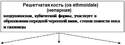 решетчатые лабиринты — боковая часть кости — состоят из ячеек (решетчатых пазух), заполненных воздухом и сообщающихся только с полостью носа. С латеральной стороны правый и левый лабиринты ограничивают тонкие глазничные пластинки, участвующие в образовании медиальной стенки глазницы. От медиальной поверхности лабиринта в полость носа отходят верхняя и средняя носовые раковины
