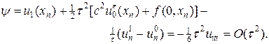 На первом слое решение можно также вычислить по начальным данным. Простейший способ получения решения на первом слое состоит в аппроксимации второго начального условия в (2) согласно представлению: