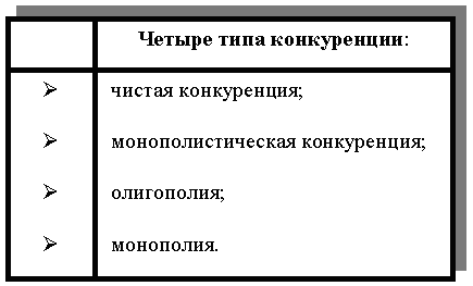 Рынок в маркетинге это совокупность существующих и потенциальных покупателей товара. Предложение продавцов характеризуется конкуренцией (рынок свободной конкуренции, чистая монополия, монополистическая конкуренция, олигополия) Рыночная экономика основана на конкуренции между производителями товаров и услуг. Четыре типа конкуренции: