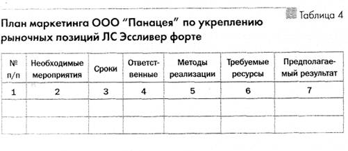 * Предусмотреть отдельные виды добавленного товара как для врачей, так и для потребителей. Например, подготовить эскиз Предусмотреть отдельные виды добавленного товара как для врачей, так и для потребителей. Например, подготовить эскиз буклета для потребителей с информацией о диетическом питании при заболеваниях печени, о здоровом образе жизни и т. п. ** Использовать такие тактики ценообразования, как ранжированные цены для пенсионеров, не имеющих статус инвалидов, родителей многодетных семей, заслуженных работников и др. ** Предусмотреть обновление интерьера АП витрин, специально выделить витрину с гепатопротекторами и информационными материалами, продумать оформление окон АП с постером по ЛС Эссливер и др. ** При подготовке кампании по продвижению ЛС учесть целевые сегменты потребителей, включить в нее мероприятия по презентации ЛС конкретно для каждого сегмента . доллара или же, наоборот, - рост курса доллара и пр. Конечно, в ПМ должна быть и финансовая часть в виде сметы доходов (инвестиций) и расходов на отдельные мероприятия. К ПМ прилагаются все аналитические расчеты и другие материалы. Резюме для руководства готовится как краткий реферат с указанием разделов ПМ, цели, разработанных стратегических направлений и карты планирования (0,5-1 с.), располагается в папке с ПМ после титульного листа и содержания с указанием глав и страниц. По образному описанию маркетологов ПМ подобен карте: он показывает, куда нужно двигаться предприятию и как туда добраться. Он соединяет все элементы маркетинга в согласованный план действий, где подробно расписано: кто, что, когда, где и как делает для достижения целей. Благодаря этому процессу АП будет всегда в курсе тех изменений, которые происходят на рынке, в курсе потребностей покупателей и спроса на ЛС и ценовые предложения конкурентов. МП позволяет эффективно использовать имеющиеся у АП ресурсы и быть готовыми к возможным неожиданностям. тестовые задания 1. Найдете ошибку. 5. Три типа базовых стратегий: Маркетинговое планирование - это поэтапный 1. Стабилизирующие. процесс: 2. Развивающие. 1. Выработка цели и стратегий. 3. Выжидающие. 2. Исследование и анализ рынка. 4. Атакующие. 3. Исследование и анализ источников финансирования. 5. Защитные. 4. Выработка детальных планов (программ) маркетинга. 5. Сопровождается практической реализацией, оценкой. 6. установите соответствие. 2. План маркетинга начинается с____________ Характер спроса: Вид маркетинга: и, зоканчивается___________. 1. Отрицательный. А. Синхромаркетинг. 1 Анализ 2. Потенциальный. Б. Развивающий. 2 Потребитель 3. Нерегулярный. В. Демаркетинг.