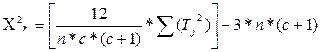 где с - количество условии; n- количество испытуемых; Tj - суммы рангов по каждому из условий.