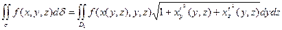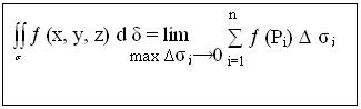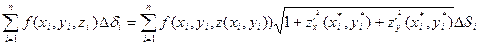 Вычисляя предел левой и правой части при max ∆σi→0 (maxΔSi→0) получим в левой части поверхностный интеграл, а в правой части двойной интеграл по области D.