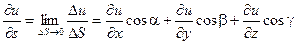 Рассмотрим функцию u(x, y, z) в точке М(x, y, z) и точке М1(x + Dx, y + Dy, z + Dz). Проведем через точки М и М1 вектор Расстояние между точками М и М1 на векторе
