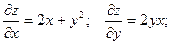 Находим частные производные функции z в общем виде: