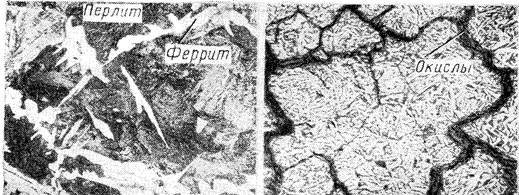 Рисунок 12.3 - Микроструктура перегретой стали (а) и с пережогом (б), ×200 2. Превращение аустенита в перлит при медленном охлаждении.