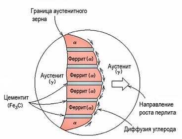 Рисунок 12.5 – Механизм превращения аустенита в перлит