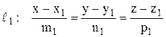 Две прямые в пространстве ℓ1 и ℓ2 могут: 1) пересекаться; 2) быть параллельными; 3) скрещиваться. В первых двух случаях две прямые лежат в одной плоскости. Пусть прямые заданы каноническими уравнениями: