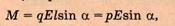 Рис.1 p = ql (3) Единицей электрического момента диполя является кулон-метр. Поместим диполь в однородное электрическое поле напряженностью Е (рис.2). На каждый из зарядов диполя действуют силы F+ = qE и F_ = -qE, эти силы равны по модулю, противоположно направлены создают момент пары сил. Как видно из рисунка 2, он равен