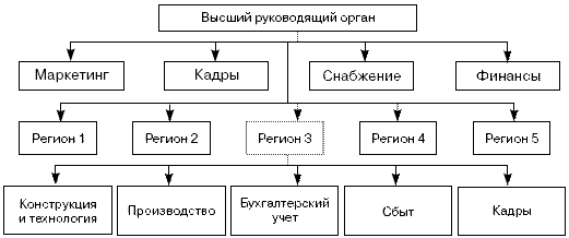 Дивизионально-региональная структура основана на том, что вся деятельность в определенном регионе подчиняется соответствующему руководителю, несущему за нее ответственность перед высшим руководящим органом фирмы.