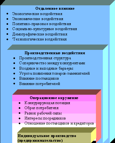 Отдаленное влияние состоит из серии факторов, которые берут начало за пределами фирмы, и обычно независимы от внутренней ситуации, сложившейся в фирме. Включая в себя экологические, экономические, политико-правовые, социально-культурные и технологические факторы, отдаленное влияние представляет собой возможности, угрозы и рамки для функционирования фирмы. И лишь изредка организация (фирма) способна оказать существенное обратное влияние. Экологические воздействия Экологические воздействия имеют отдаленное влияние на процесс принятии решений в управлении. Беспокойство по поводу охраны окружающей среды повлекло за собой в 70-х годах в США принятие особых законодательных актов об очистке воздуха и воды. Позднее в 90-х годах с некоторыми осложнениями для предпринимателей бы' ли предприняты действия, направленные на консервацию источников минеральных ресурсов и их обогащение. Пропущенный Конгрессом в 1976 г. законодательный акт о консервации месторождений полезных ископаемых для их обогашения был фактически направлен на изоляцию 15 000 крупнейших генераторов вредных отходов, которые являлись основным источником 250 тонн вредных отходов горнодобывающей отрасли, производимых в США ежегодно. Чем больше правительство уделяет внимания проблемам управления отходами, тем яснее становится, что даже мелкие источники вредных выбросов могут оказывать губительнейшее воздействие на будущее природы путем неправильной их переработки. Поэтому администрация Рейгана расширила рамки вышеназванного законодательного акта в 1984 г. Предприятия, производящие даже всего около 100 кг токсичных отходов в месяц теперь тоже попадают под резолюции этого акта. По подсчетам число таких компаний в США составляет 190 тыс. Среди них такие, как: компании по производству запчастей и горюче-смазочных материалов и компании но производству моющих веществ, в их производственном процессе используется перххлорэтилен, который по опасениям врачей может вызывать раковые изменения в организме.