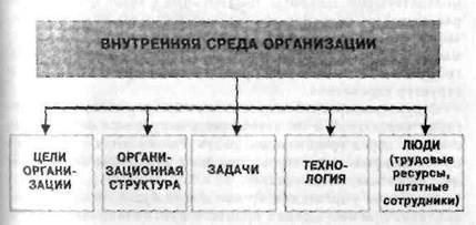 Все организаций - системы, созданные людьми в результате те управленческих решений. Значит, и их внутренние факторы - результат управленческих решений. Но все ли внутренние факторы могут контролироваться и существенно изменяться руководством? Нет, далеко не все. Например, на ВАЗе или другом предприятии массового производства не выбросишь конвейер, несмотря на то, что он неблагоприятно воздействует на здоровье людей. Приходится с этим мириться. Но существуют основные внутренние факторы, которые присущи всем организациям и которые требуют постоянного внимания руководства. Это - цели, структура, задачи, технология, люди (рис.
