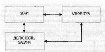 1.3.1. Цели Организация - это группа людей с осознанными общими целями, т.е. организация - это средство достижения целей, которых нельзя достичь в одиночку. Цели - конкретные конечные состояния или желаемый результат, которых хочет добиться группа, работая вместе. Каждая организация имеет много различных целей: производство различной продукции и услуг, прибыль, рынки и т.д. Цели подразделений тоже многообразны и различны. Например, отдел маркетинга может иметь цель - снизить количество жалоб потребителей на 20%. Но главная цель любой организации - выжить. Организация имеет всегда хотя бы одну общую цель, достичь которую стремятся все члены трудового коллектива. На практике весьма редко встречаются организации, имеющие только одну цель. Организации, имеющие несколько взаимосвязанных целей, называют сложными организациями. Важно, чтобы намеченные трудовым коллективом цели были реальными и выполнимыми. Процесс претворения организацией целей в жизнь представлен на рис. 1.7. 1.3.2. Структура Структура организации - это ее взаимосвязанные и взаимодействующие элементы, построенные в такой форме, которая позволяет наиболее эффективно достигать целей организации. Сюда входят и управляемая и управляющая подсистемы. Это службы, отделы, цехи, участки и т.д. В связи с многообразием организаций применяются и различные типы структур управления. Структура управления организацией - это совокупность органов управления и их взаимосвязь в процессе выполнения стоящих перед организацией задач. Различаются следующие организационные структуры: линейная, функциональная, штабная, проектная, матричная. Структура управления организацией будет подробно рассмотрена при обсуждении процесса функционирования организации. Здесь же мы обратим внимание на две основные концепции, имеющие отношение к структуре: специализированное разделение труда и сфера контроля. О разделении труда мы уже
