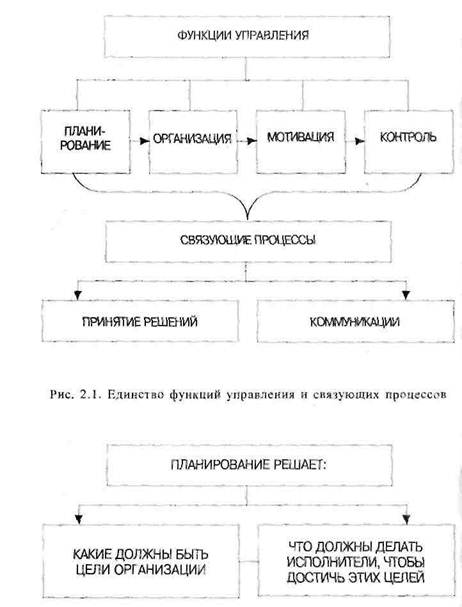 Рис. 2.2. Назначение процесса планирования видеть. А.Файоль в 1916 году в книге «Общее и промышленное управление» так определил планирование: «План действия - это одновременно и предвидимый результат, и направление действий, которому надо следовать, и этапы, которые надо пройти, и методы, которые следует применить. Это своего рода картина будущего, в которой ближайшие события очерчены с некоторой определенностью, в то время как отдаленные события выступают все менее отчетливо» [22]. При начале любого более или менее крупного мероприятия, прежде всего, необходимо обеспечить ясное понимание поставленных задач и целей, а также форм и методов их осуществления. Как отмечал Б.Готц, планирование - это выбор, вот почему «проблема планирования возникает только тогда, когда обнаруживается альтернативный образ действий». Иначе говоря, планирование предполагает наличие альтернатив и поэтому оно тесно связано с принятием решений. Планирование предшествует выполнению всех других управленческих функций, поскольку оно призвано сформулировать цели и задачи организации, пути, средства и методы их достижения (рис. 2.3). По своей сущности планирование представляет собой процесс определения целей предприятий или в более широком смысле является организационной системой По мнению, например, К.У. Рауни, планирование преследует две цели: защитную и афирмативную. Защитная цель планирования состоит в том, чтобы свести к минимуму риск, в наибольшей степени сократить неясности, связанные с условием осуществления бизнеса, и четко представить последствия деятельности сопряженного с ним менеджмента. Афирмативная цель состоит в том, чтобы увеличить масштабы успеха предприятия и скоординировать усилия внутри организации. Отсутствие планирования влечет за собой потерю координации и, соответственно, неэффективность предприятия. Основополагающая задача планирования состоит в том, что- бы помочь предприятию достичь его цели. Все другие цели занимают подчиненное положение в отношении нее. Одним из важнейших преимуществ планирования является то. что оно помогает менеджерам выработать в себе такое не- егулируются высшим руководством, но реализуется на всех уровнях управления. 2.2.1. Этапы планирования [27] К процессу планирования можно отнести следующие основные этапы: 1) конкретизация целей; ) прогнозирование; 3) постановка задач; 4) составление программы; 5) разработка плана-графика; 6) составление сметы ресурсов; 7) установление политики фирмы; 8) формирование процедур. Следует отметить, что эти этапы выполняются не всегда в такой четкой последовательности, как записано. После выполнения каждого этапа необходимо оценить влияние его в будущем на другие факторы и скорректировать предыдущие этапы Конкретизация целей - первое и самое существенное решение при планировании. Целей обычно несколько. Основная Главная цель организации - причина ее существования, называется миссией организации. Миссия детализирует статус фирмы и обеспечивает взиравшие и ориентиры для определения и конкретизации целей на разных уровнях управления. Цели вырабатываются и уточнятся на основании этой миссии. Они являются критериями для всего последующего процесса принятия управленческого рвения (рис. 2.4). [ Многие считают главной целью прибыль. Но при такой направленности недолго буде