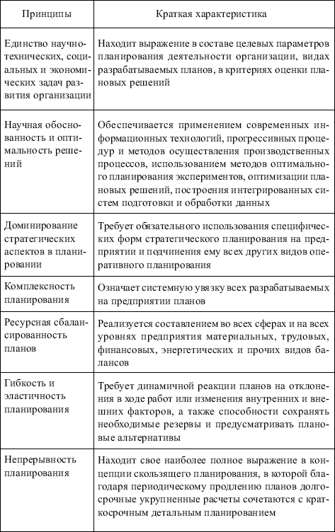 Сравнительная характеристика стратегического и оперативного планирования Принципы планирования