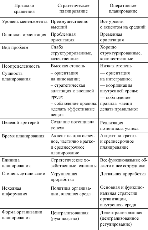 Организация. Сравнительная характеристика стратегического и оперативного планирования