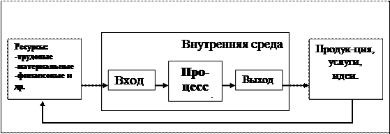 Практически все факторы внешней среды относятся к неконтролируемым со стороны организации и ее служб. Вместе с тем организации могут приспосабливаться к меняющейся внешней среде, а также в определенной мере влиять на нее. Под внешней средой понимают все условия и факторы, возникающие в окружающей среде, независимо от деятельности конкретной организации, но которые оказывают или могут оказать воздействие на функционирование организации. Важнейший элемент культуры - это ценности, т.е. общие убеждения по поводу того, что хорошо, что плохо или безразлично в жизни. Члены организации отличаются друг от друга по многим параметрам. Эти отличия могут оказать влияние на характеристики работы, их действия и поведение, на результаты труда. Поэтому от решения задач управления трудовыми ресурсами в значительной степени зависит успех функционирования организации. И, наконец, шестая внутренняя переменная - организационная культура, или культура организации. Культура организации - это система коллективно разделяемых ценностей, убеждений, традиций и норм поведения, оказывающая влияние на поведение отдельных работников и групп в организации, а также на результаты совместной работы. Система норм и ценностей отдельного человека находится в зависимости от его личности и от установок и ценностей в организации, а также от многих других факторов. Все эти элементы в комплексе определяют поведение работников и успешность деятельности организации. Все организации обладают своей культурой, так же как люди обладают индивидуальностью. На культуру организации влияют ее происхождение, форма собственности, стиль руководства, яркие события в жизни организации, политика и практика организации, нравственные ценности организации и др. Организации различаются между собой внешним видом, атмосферой в организации и методами работы, традициями, убеждениями. И все это отражается в организационной культуре. Культура - это важный фактор в достижении эффективности организации. Все внутренние переменные действуют во взаимосвязи, что позволяет достигать целей организации. 3 Основные факторы внешней среды и механизм их влияния на организацию Организация как открытая система может выжить только во взаимосвязи с внешней средой. Связь и взаимодействие внешней среды с процессом преобразования в организациях показана на рис.7.