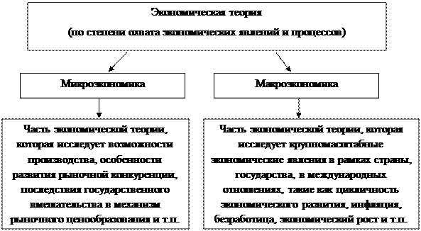 Рис. 4 Классификация экономическая науки по степени охвата экономических явлений и процессов Традиционный курс микроэкономики включает следующие теории: спроса и предложения, потребительского поведения, производства, издержек производства, рынков совершенной и несовершенной конкуренции, «фиаско» рыночного механизма, общего равновесия и пр. Так, на микроуровне изучаются предпочтения потребителей, модели ценовой стратегии фирм, виды конкурентного поведения, вмешательство государства в механизм ценообразования и т.п.; на макроуровне – структура основных макроэкономических показателей, типы экономического роста, виды инфляции, особенности занятости, антициклического регулирования государства и т.п. На основе данных ex post проводится сравнительный анализ, выявляются закономерности, осуществляется корректировка уже имеющихся концепций, разрабатываются новые. Макроэкономика представляет собой часть экономической теории, которая исследует крупномасштабные экономические явления во-первых, в рамках страны, государства, в международных отношениях, такие как цикличность экономического развития, инфляция, безработица, экономический рост и т.п.; а во-вторых, выбор наиболее рациональных методов их регулирования. В определении понятия «макроэкономика» есть некая историчность. Понятие «макро» означает большой, длинный. Применительно к экономической теории слово «большой» может использоваться к определению экономической системы в целом. В целом следует заметить, что структура современной экономической теории является достаточно гибкой и формируется под воздействием процесса развития экономической системы и методов научного анализа. Нравится это или нет, но основные проблемы современной политики действительно являются чисто экономическими и не могут быть поняты без знания экономической теории. Только человек, разбирающийся в основных вопросах экономической теории, в состоянии выработать независимое мнение по рассматриваемым проблемам.
